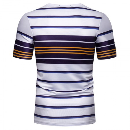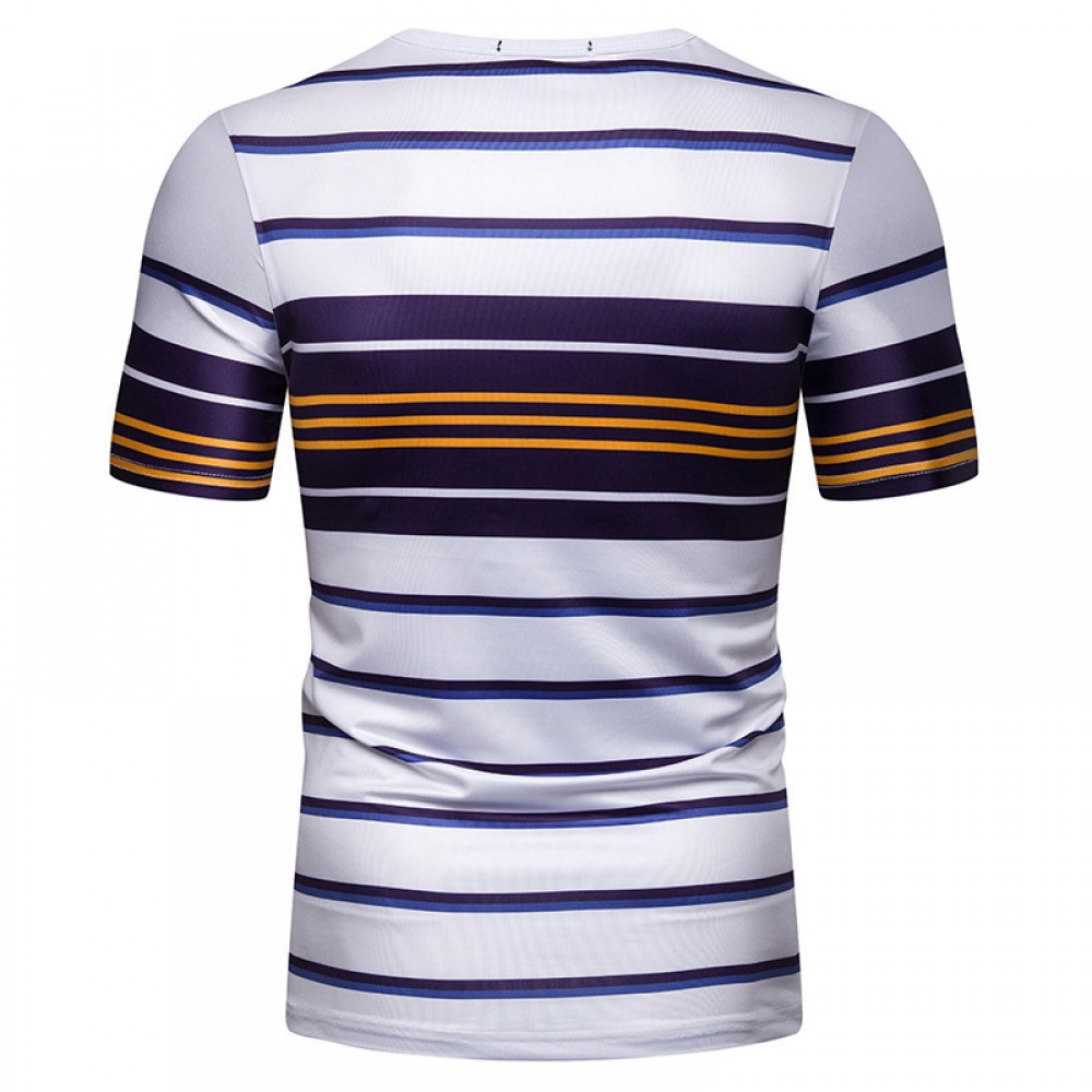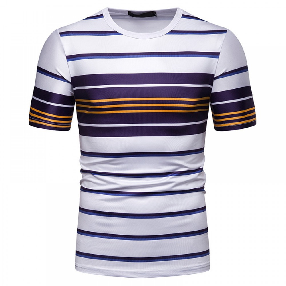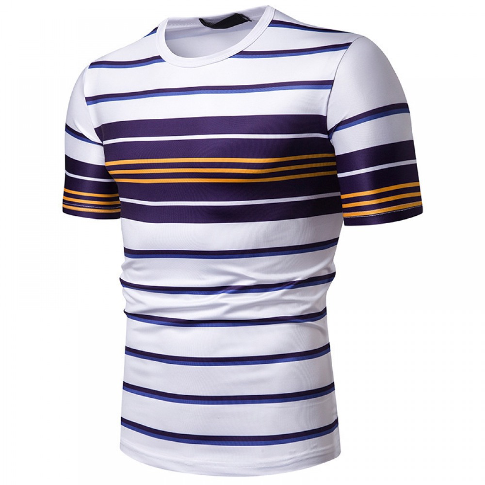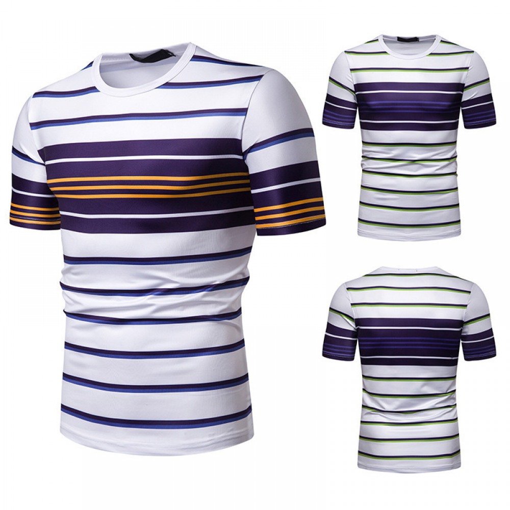 New Summer Men's Short-Sleeved T-Shirt Mens Contrast Striped Slim Casual T-Shirt